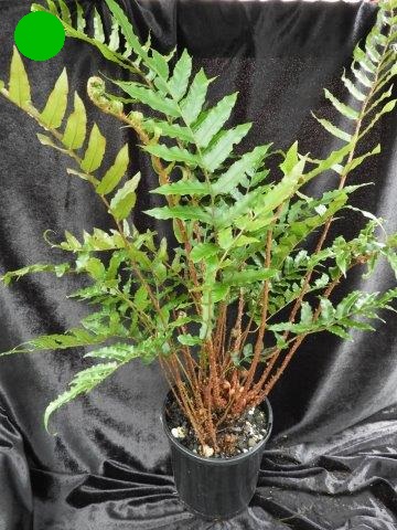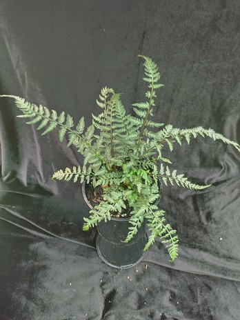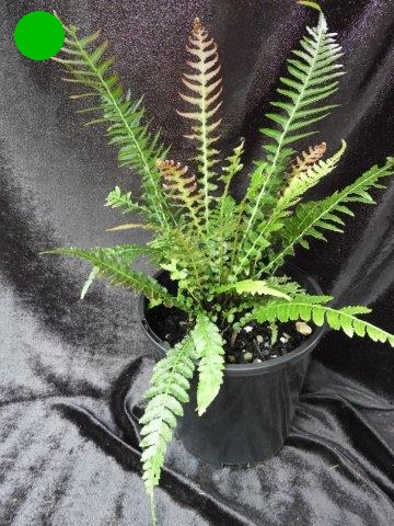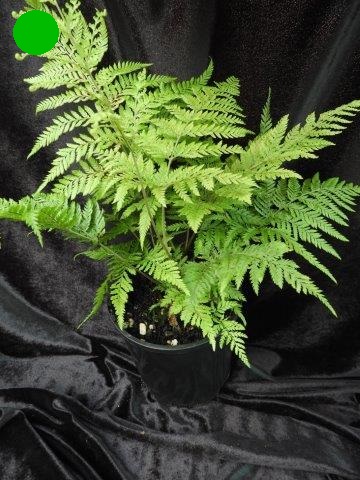 This is a cold hardy fern from China. It has handsome coloured fronds with a purple/plum midrib and medium green foliage. Grows to approximately 60cm high and enjoys filtered sunlight and humus, moist soil. It makes a nice feature. plant.
