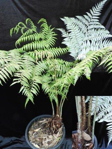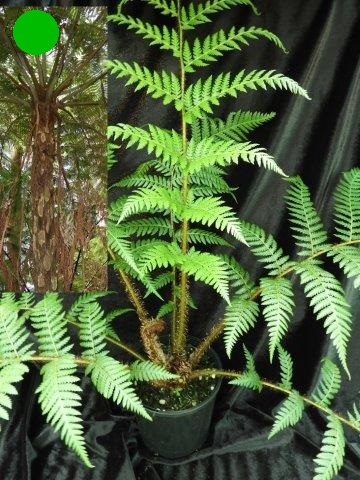 Australian native fern. This tree fern is the one most commonly grown in fern gardens, usually brought truncated. Pot grown it is quite slow and will produce a large bushy head of foliage with the trunk taking some time to grow. Likes shady, moist, humus conditions.