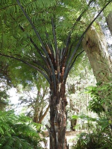 Austalian native fern. As the common name implies this tree fern has a very slender trunk that is dark brown/black in appearance. With a crown of 1.5-2mtr of bright green fronds. It loves good moisture and filtered light.