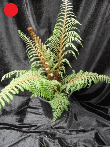 Australian native fern. A very hardy fern growing to about 50cm. New fronds are bright red softening to a bright green, then a darker green with age. Suits areas with morning sun. Requires good moisture and humus soil.