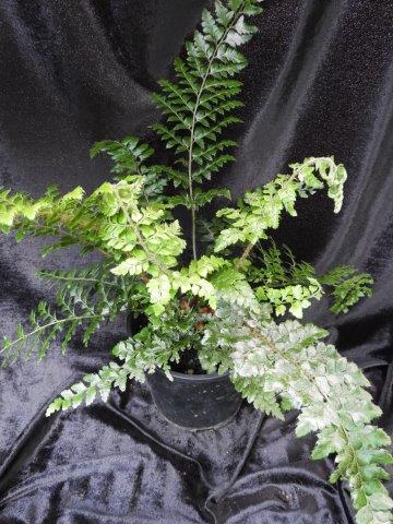 This is a tall growing fern with variegated white foliage. It is not the quickest grower within this group of ferns but certainly can add a highlight to your garden or fernery. Variegation can vary from a thin to a thick white stripe through the frond. Fertile fronds are taller and thinner than the non-fertile fronds. Suitable for vertical walls, pots and the garden.